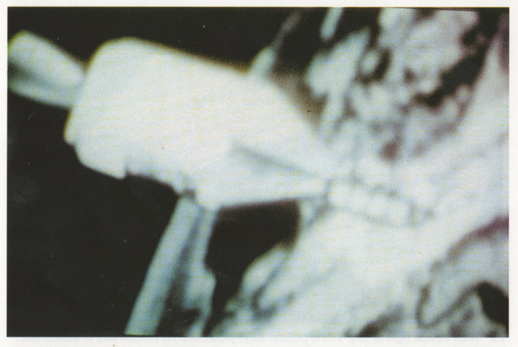The American Apollo 18 capsule and the Russian Soyuz 19 performing a docking maneuver on 17th July 1975 as seen through a viewing screen inside a Plejaren beamship. Taken by Billy Meier.