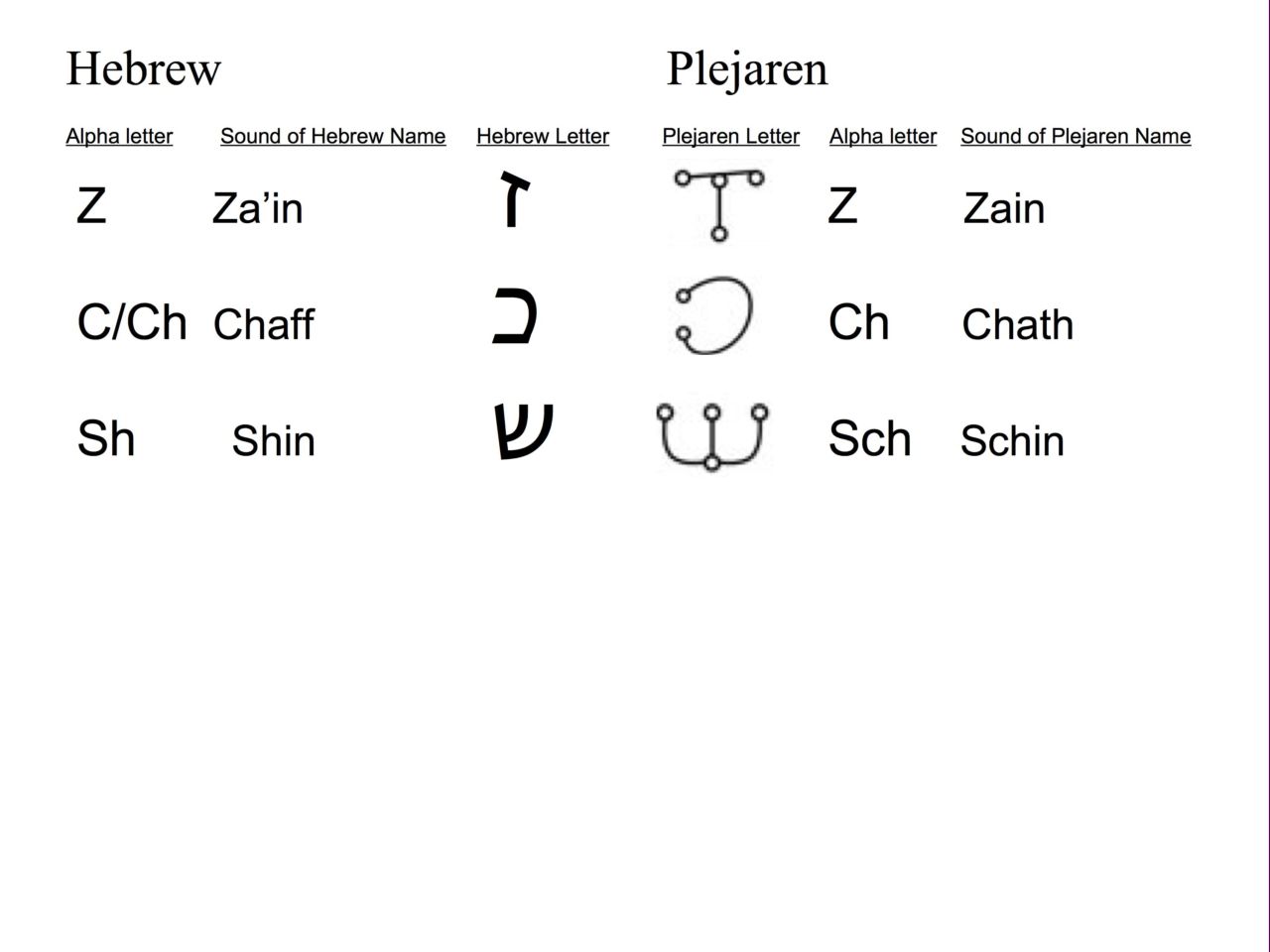 Correlation between Hebrew and Plejaren alphabets image 4 of 4.
