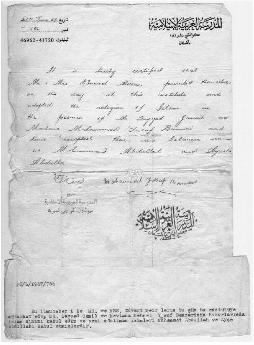 Certificate naming Eduard Albert Meier Mohammed Abdullah (scan of the original)