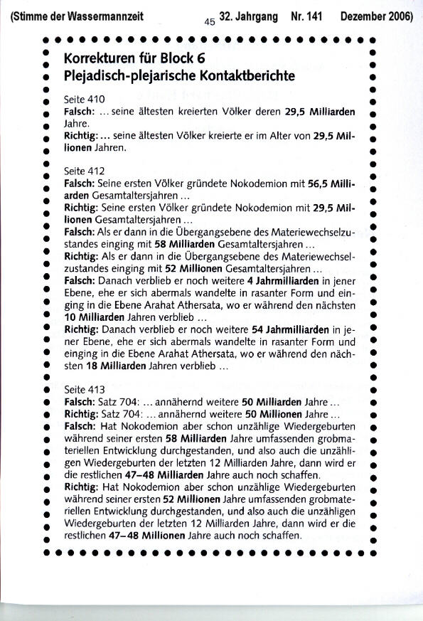 Amended on December 17th, 2006 with corrections from page 45 of the December 2006 Stimme der Wassermannzeit