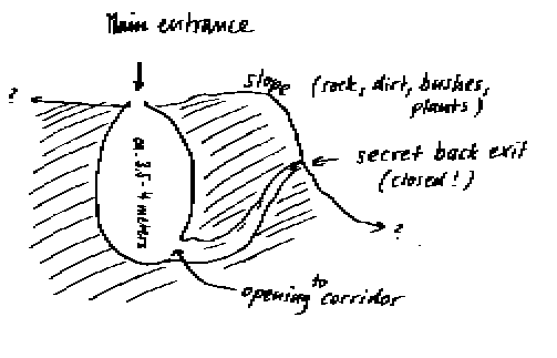 To the best of his 34-year-old recollection, Meier drew the sketch below of a plan view of the tomb. A member of his support group (F.I.G.U.) labeled it in English.